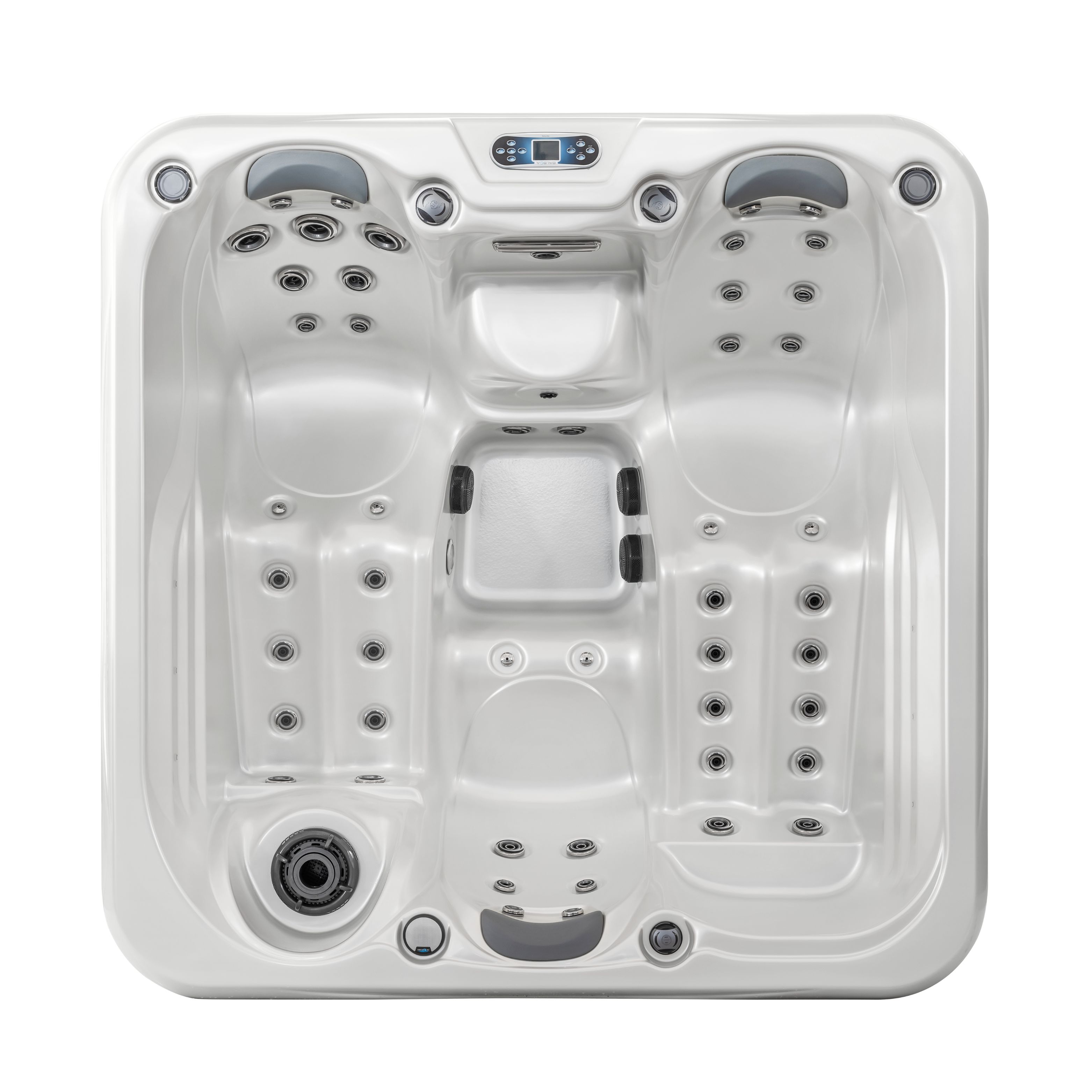 Der komfortable Whirlpool HC 2 bietet zwei Sitz- und Liegebereiche. Er verfügt über insgesamt 50 Düsen (44 Hydromassage- und 6 Luftdüsen). Zur Standardausstattung gehören farbige LED-Beleuchtung, anatomisch geformte Kopfstützen, ein Wasserfall, ein Steuerungssystem, ein Titanboiler, eine Thermoabdeckung sowie UV-beständige und langlebige Seitenwände.