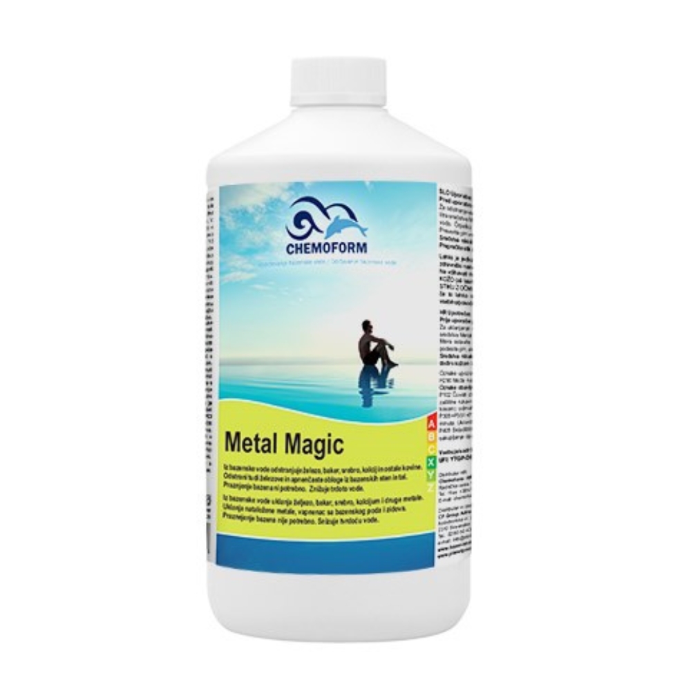 Chemoform Metal Magic 1L is a specialized liquid treatment designed to remove dissolved metals from pool water, including iron, copper, silver, calcium, and other metal ions. These metals can cause stains, discoloration, and cloudy water.